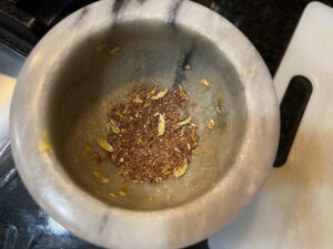 - Grind the spices using a mortar and pestle into a fine powder (since the quantities are very small, a blender won't help. A mortar-pestle is ideal for small quantities and also helps to release the oils from the spices)